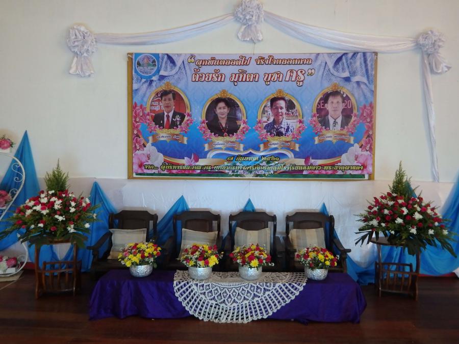 โรงเรียนชุมชนบ้านแม่ตาวกลางมิตรภาพที่ 26 และ ผู้บริหารและคณะครู บุคลากรทางการศึกษากลุ่มโรงเรียนแม่ตาว-พระธาตุผาแดง ร้อยรักรวมใจ สานสายใยมุทิตาบูชาครู วันที่ 7 กันยายน พ.ศ.2561 ซึ่งมีครูและผู้บริหารเกษียณอายุราชกาล ในปี 2561 นี้จำนวน4ท่านได้แก่ 1.ผอ.กระกาศิต คำสุข 2.ครู เอื้อมพร คำเวหา 3.ครู ศกุนตี สุรินทร์ 4.ครู ประมวลรัฐ พันธุเขตต์การณ์ S:0