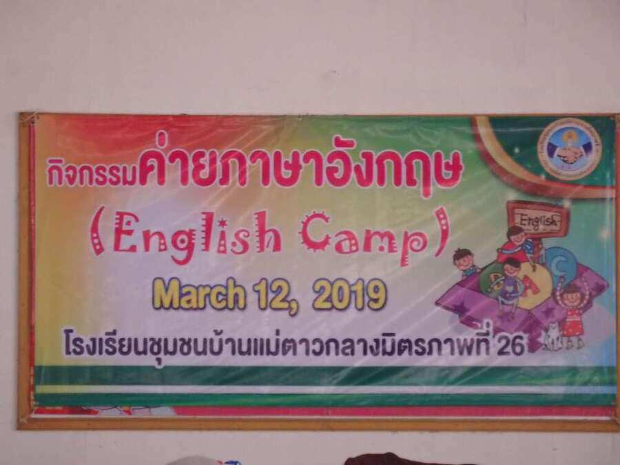 วันอังคารที่ 12 มีนาคม พ.ศ. 2562 โรงเรียนชุมชนบ้านแม่ตาวกลางมิตรภาพที่26 ได้จัดกิจกรรมเข้าค่าย English Camp โดยมี นางอัมพร ศิริขวัญ ผู้อำนวยการโรงเรียน เป็นประธานกล่าวเปิดกิจกรรม ณ โรงเรียนชุมชนบ้านแม่ตาวกลางมิตรภาพที่26 S:0