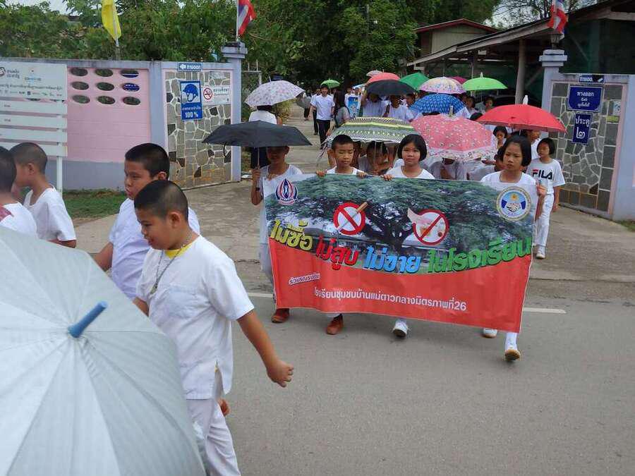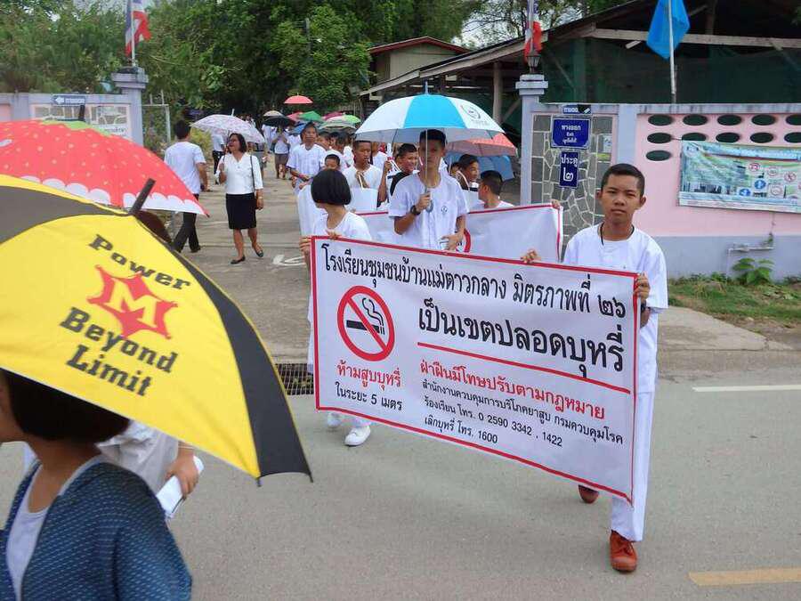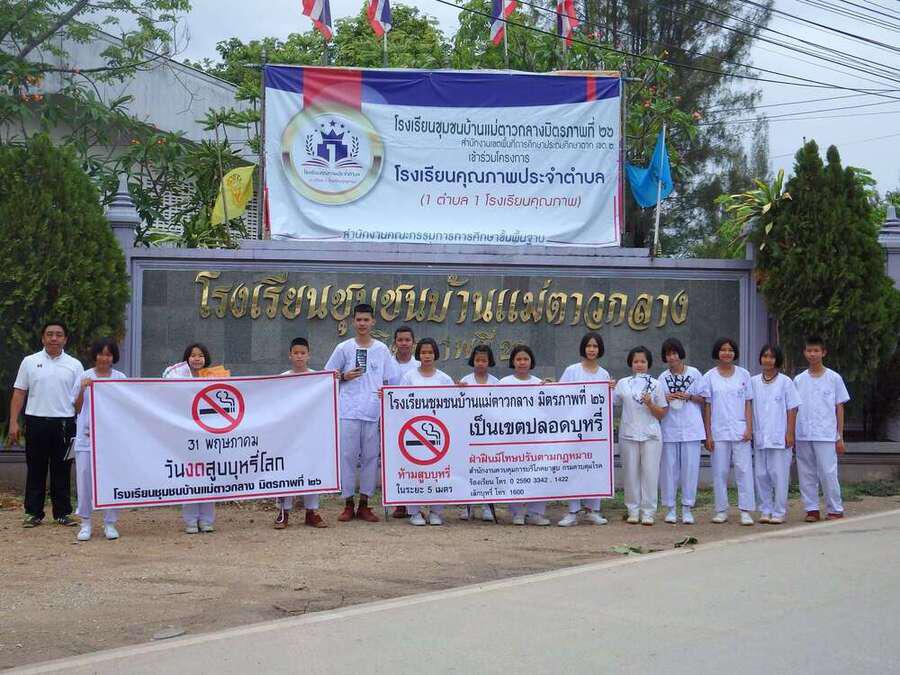 วันที่ ๓๑ พฤษภาคม ๒๕๖๒ ผู้อำนวยการโรงเรียนนางอัมพร ศิริขวัญคณะครูและนักเรียนโรงเรียนชุมชนบ้านแม่ตาวกลางมิตรภาพที่๒๖ ร่วมกิจกรรมวันงดสูบบุหรี่โลกความรู้เกี่ยวกับโทษของบุหรี่นอกจากนี้ยังมีการรณรงค์ให้ความรู้เกี่ยวกับ โรคไข้เลือดออก การใช้ถนนอย่างปลอดภัยและความตระหนักเรื่องประกันภัย อีกด้วย S:0
