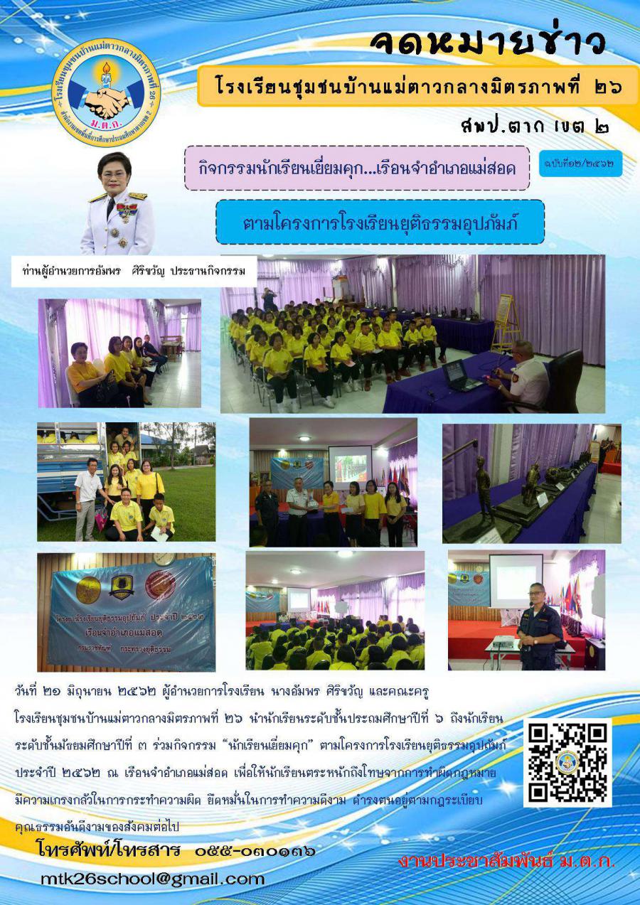 กิจกรรมนักเรียนเยี่ยมคุก ......เรื่อนจำอำเภอแม่สอด ตามโครงการยุติธรรมอุปถัมภ์