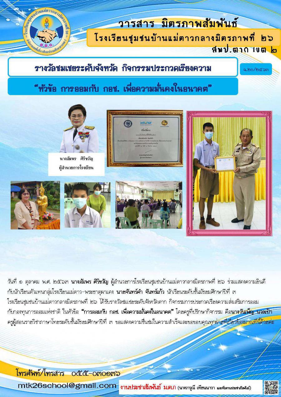 20-2563 รางวัลชมเชยประกวดเรียงความ